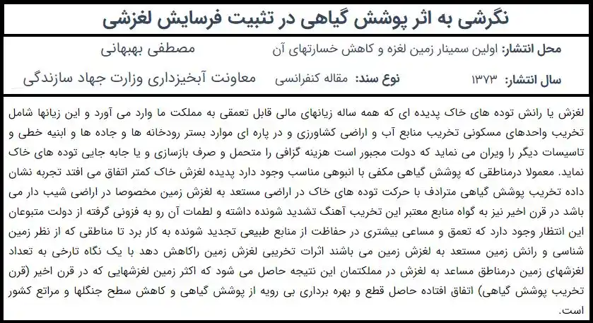 نگرشی به اثر پوشش گیاهی در تثبیت فرسایش لغزشی