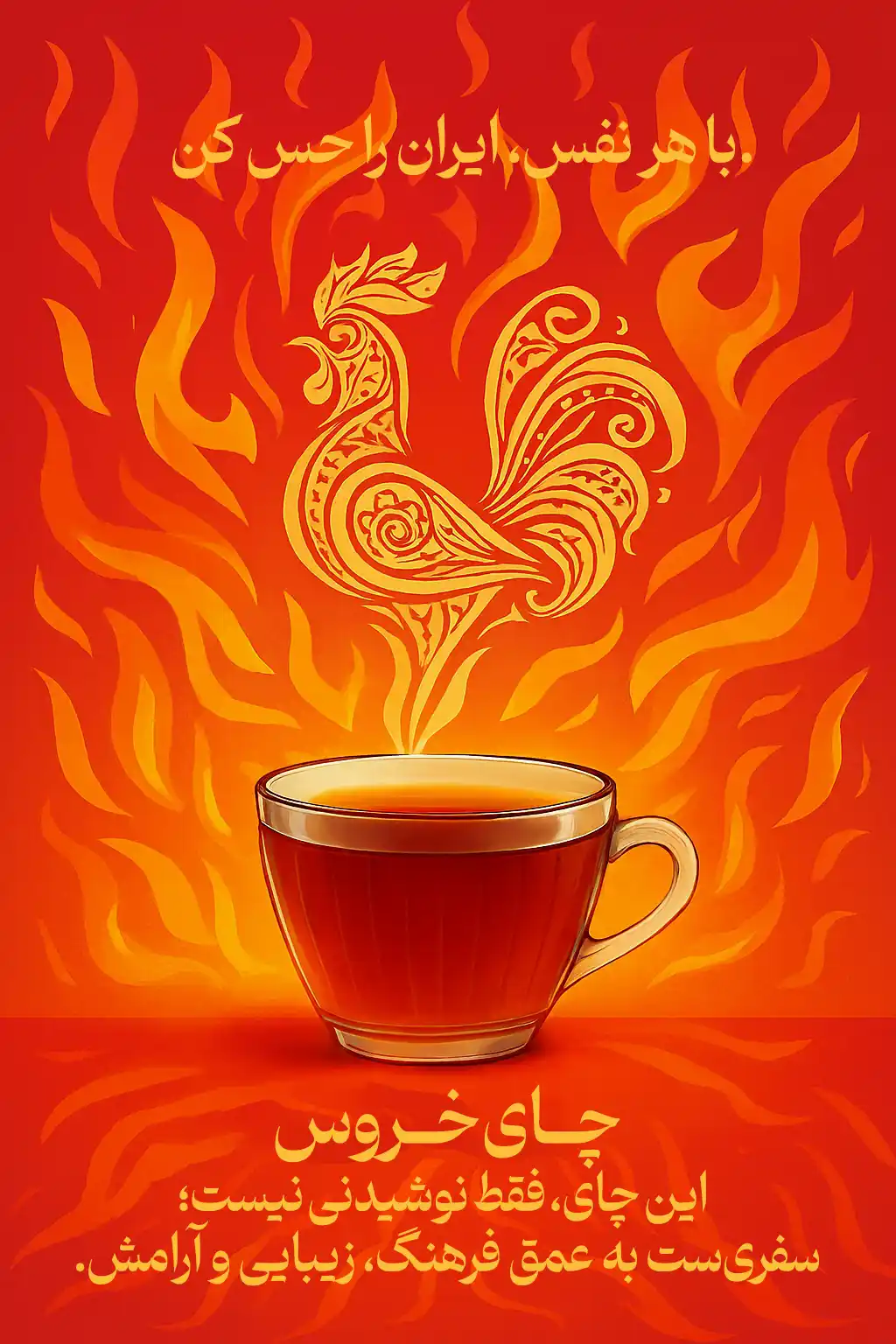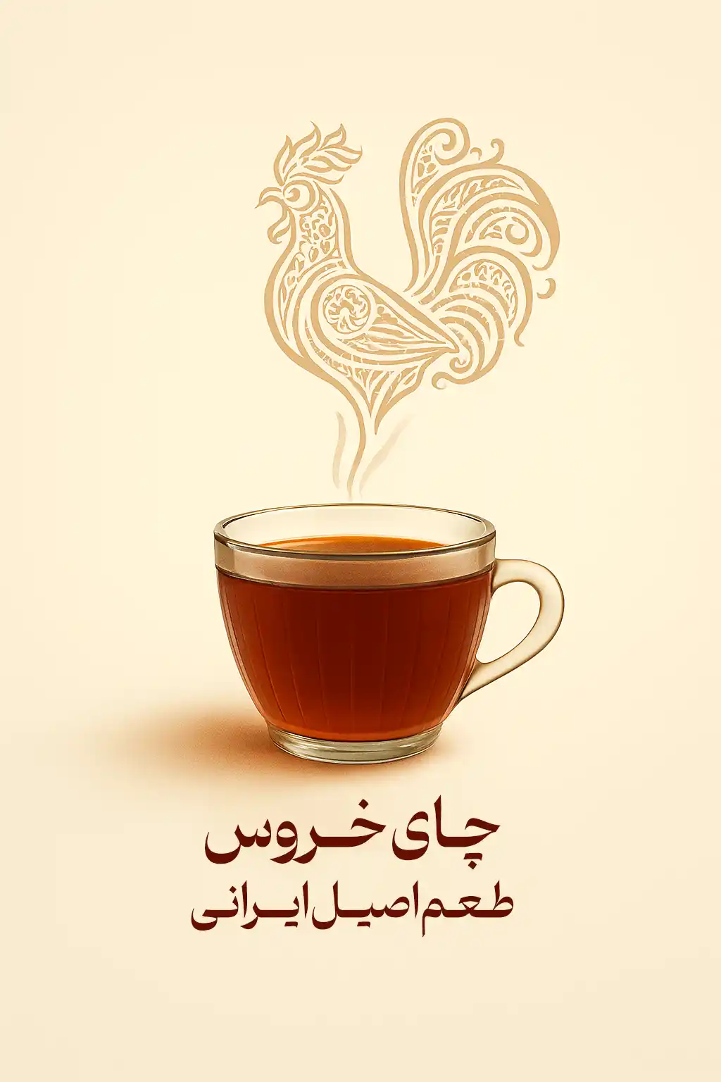 - سادگی بصری بالا: استفاده از فضای خالی زیاد و رنگ خنثی (کرم) باعث تمرکز روی فنجان چای و بخار خروس شکل می شود.